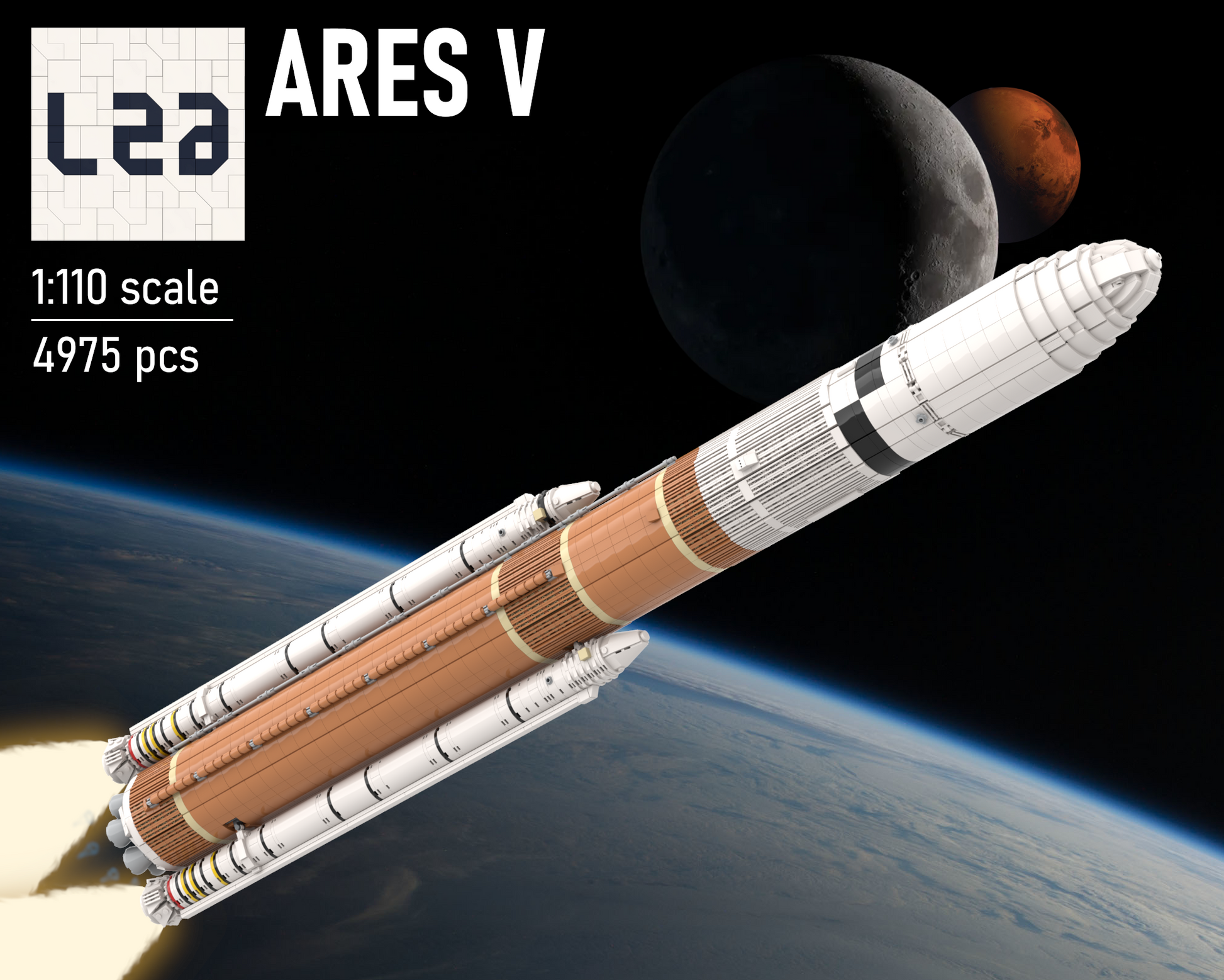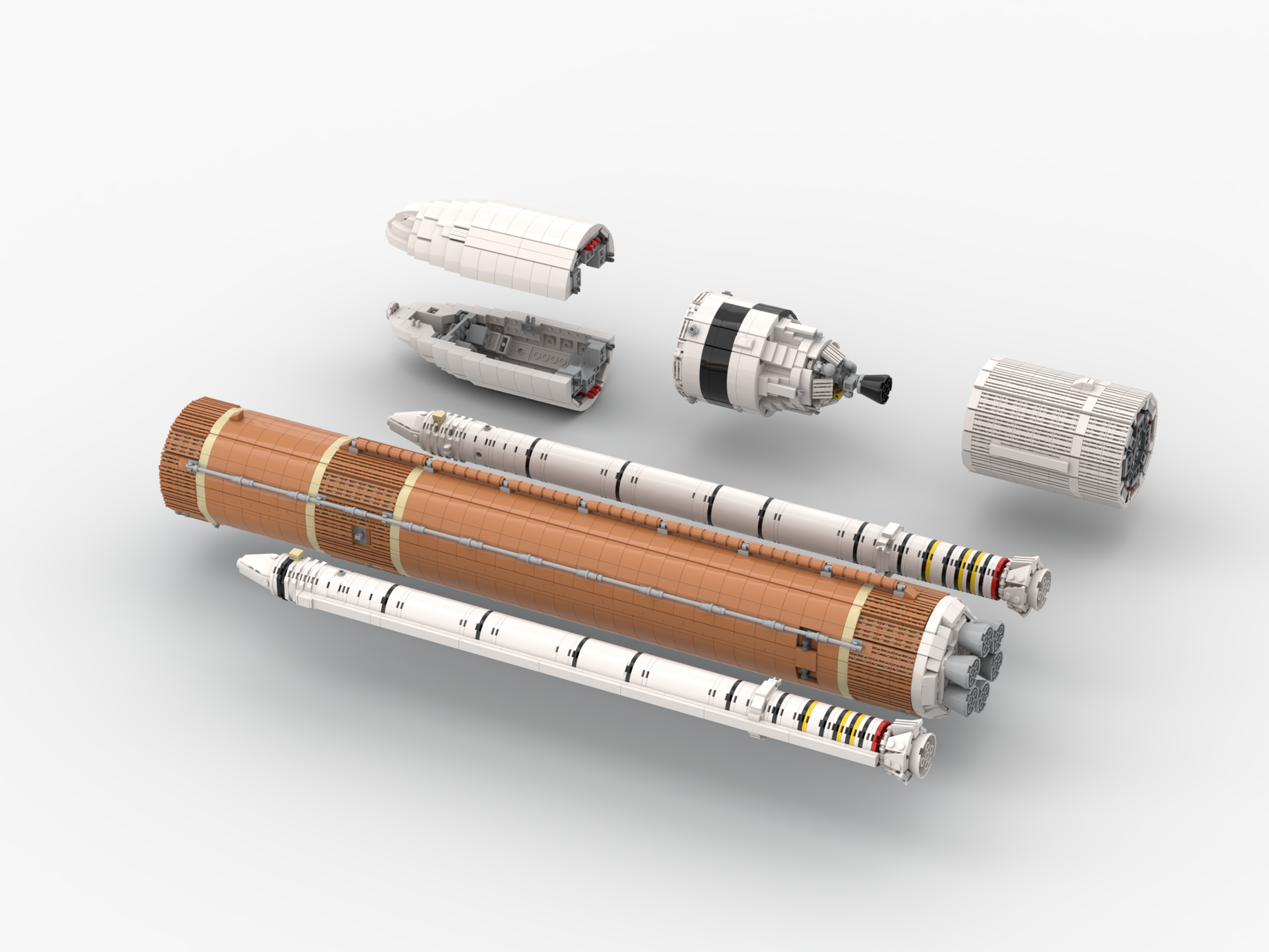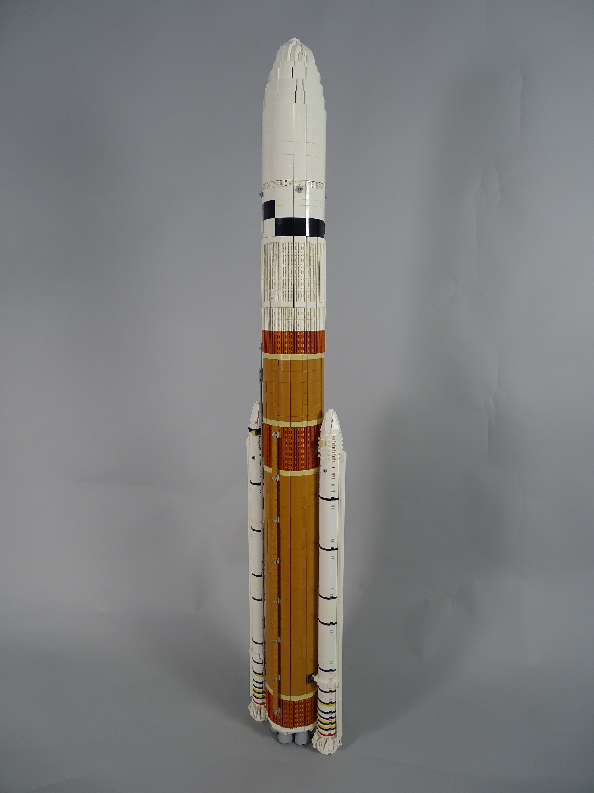 With its 4975 pieces and a height of 105 cm (41.5"), this model rightfully captures the monumentality of NASA's proposed heavy launcher, specifically the last iteration from 2008. It's built at 1:110 scale, the same scale as the LEGO® Saturn V set! The model has a sturdy construction and scale-accurate exterior dimensions and details. Despite the high piece count the bricks to build the model cost around $320 (excl. shipping) and are bought separately following the "How to buy the bricks" section below.
