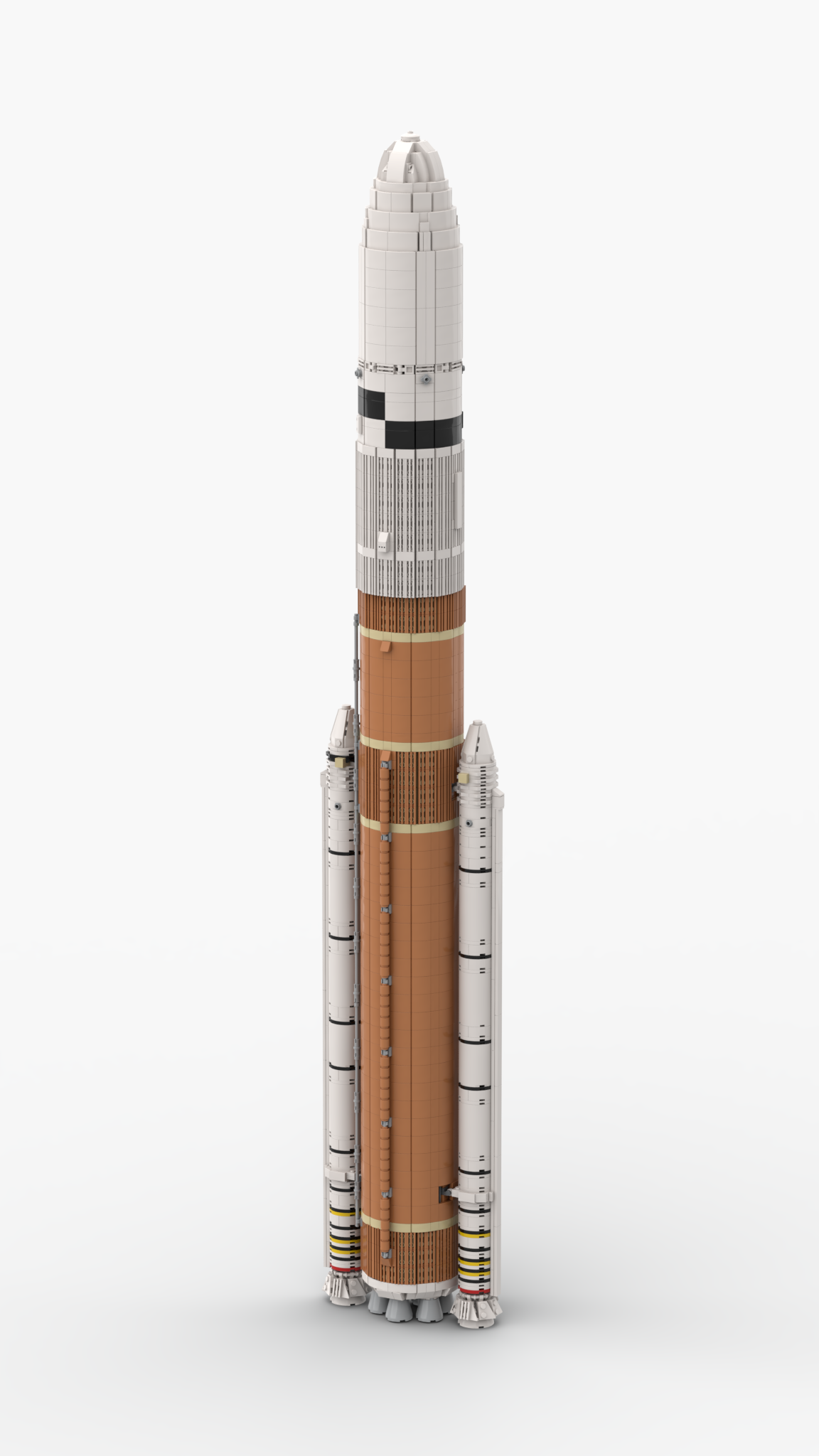 - Six RS-68 engines, two 5.5-segment booster and a detailed second-stage J-2X engine section.