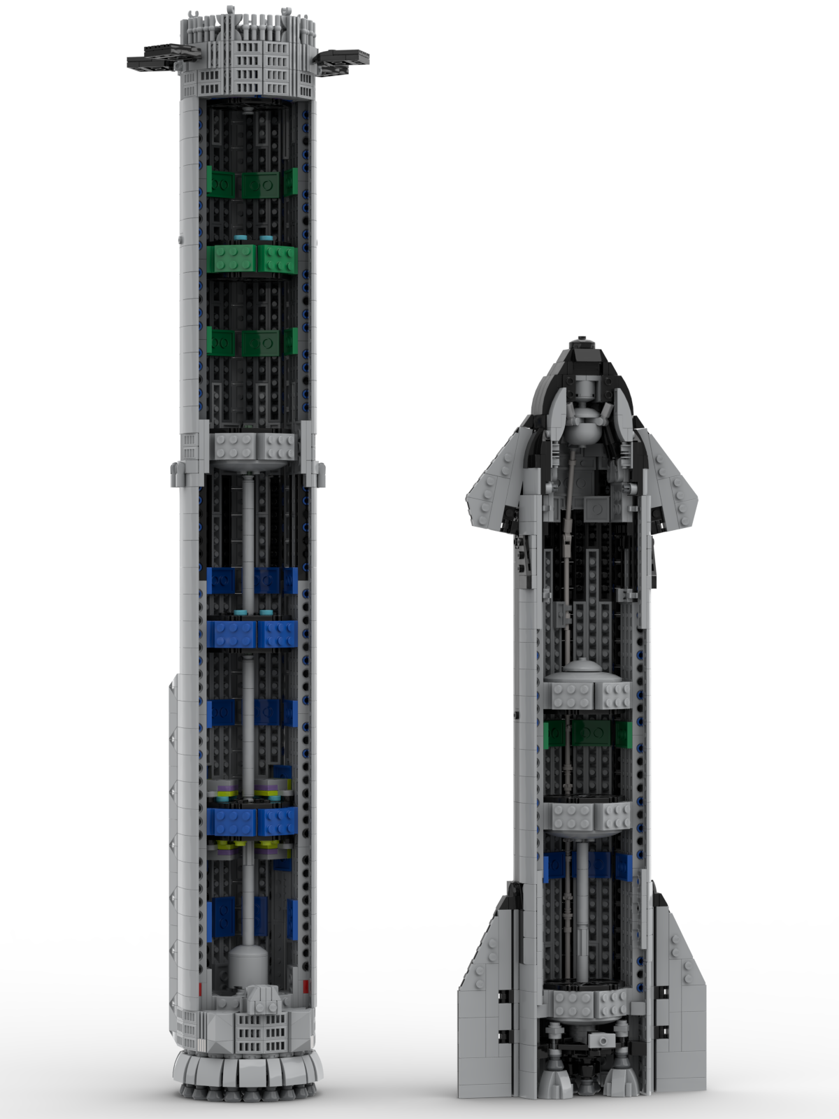 1. Default Starship & Super Heavy [3185 pcs] - builds the default light gray Starship 24 & Booster 7.